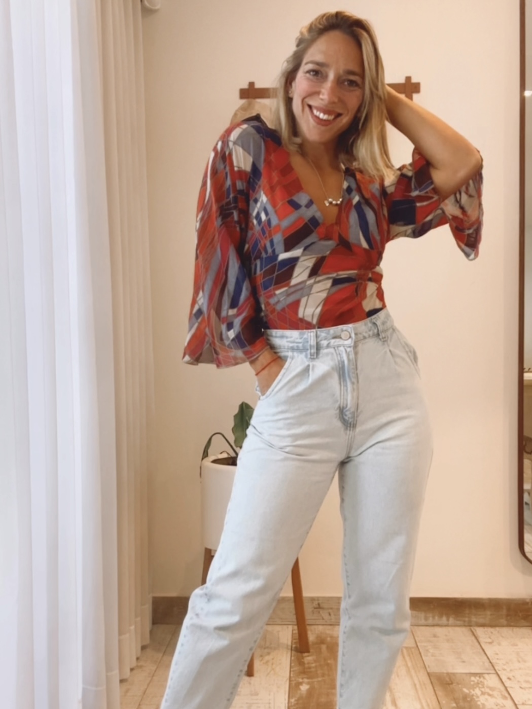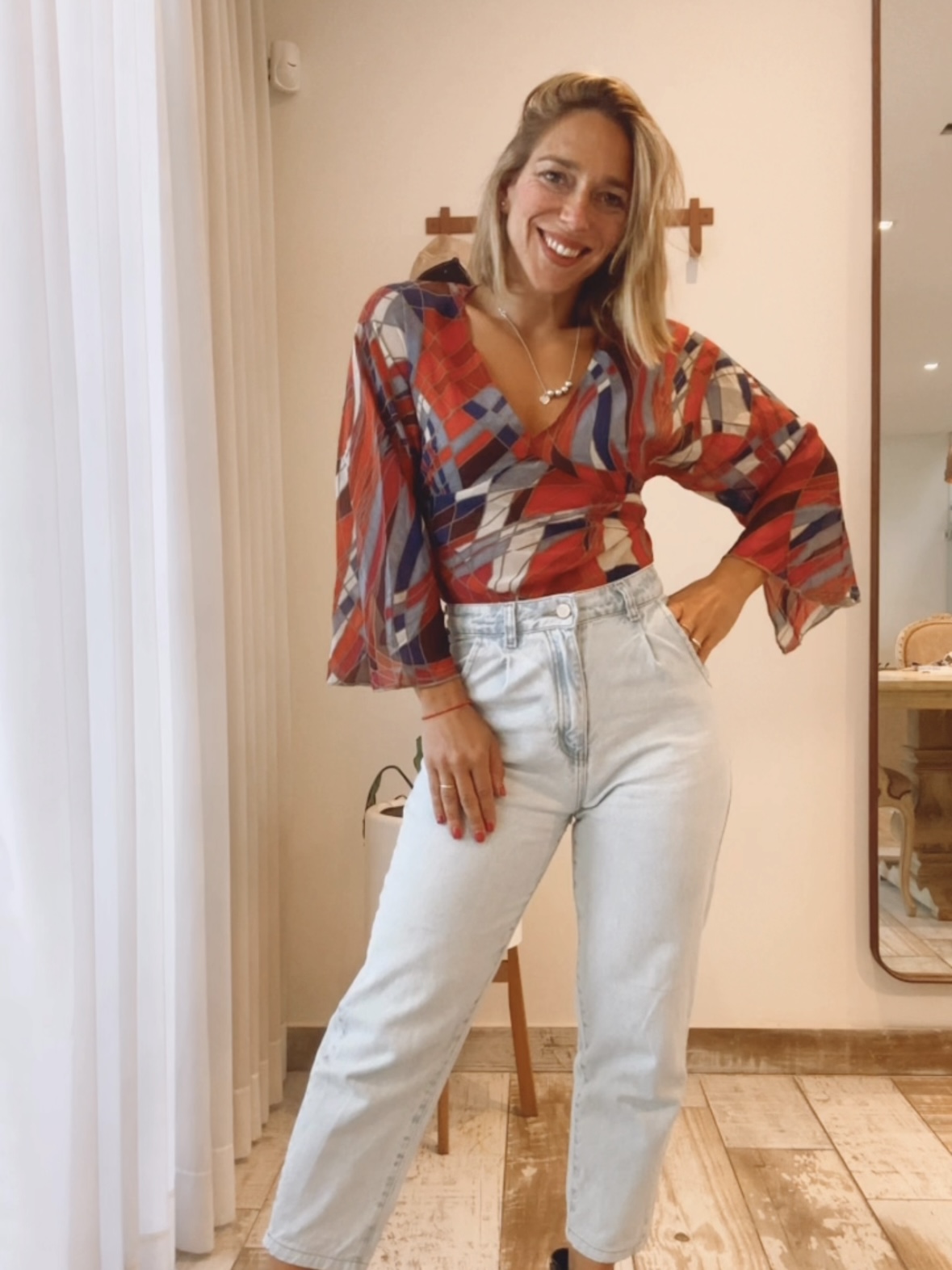 CAMISOLA EN CREPPE STAMPADO, CON LAZO EN LA ESPALDA.