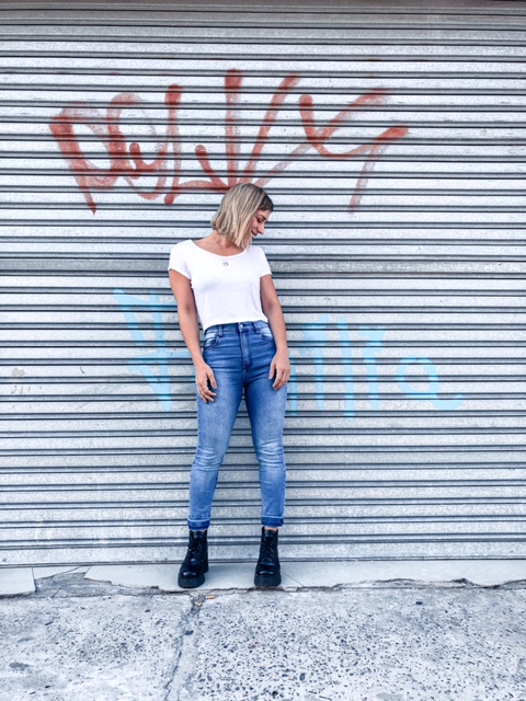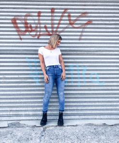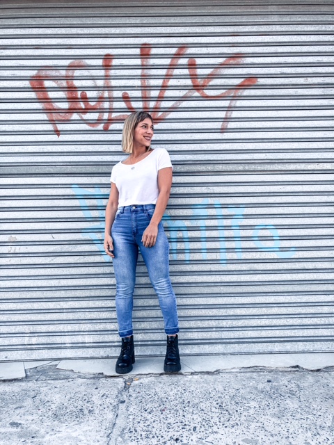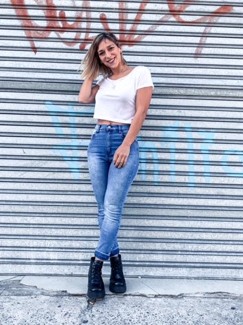 PANTALON DENIM SUPER ELASTIZADO TIRO ALTO CON DOBLADILLO GASTADO