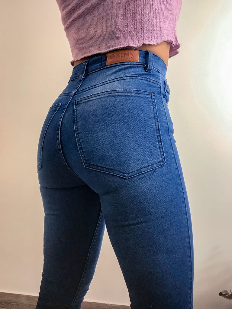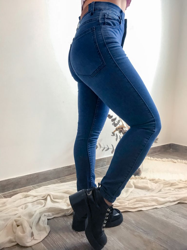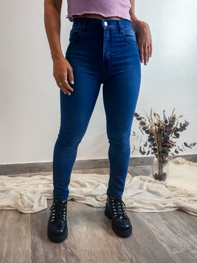JEAN TIRO ALTO CON LONA ELASTIZADA Y COLOR AZUL GASTADO